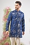 Featuring a bright blue kurta in silk base with floral pattern, mirror and thread work. Accentuate it with trousers, pair of kolhapuris and a bracelet for festive celebrations or sangeet ceremony.