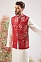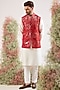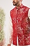 Bright Red Silk Mirror & Floral Embroidered Nehru Jacket
