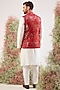 Featuring a bright red nehru jacket in silk base with mirror and floral embroidery. Accentuate it with a kurta set, pair of mojaris and a watch for a festive occasion or pooja ceremony.