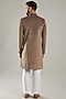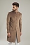 Featuring a bronze sherwani in velvet base with metal buttons. This contains one piece only.