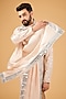 Cream-Beige Silk Mirror Embellished Kurta With Stole