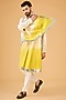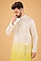 Cream-Yellow Ombre Silk Mirror Work Kurta With Stole