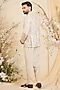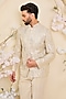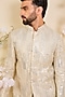 Featuring a gold bandhgala in tissue base with sequins, threadwork and mirror work. Style it with pants and shoes for a reception, wedding, sangeet or engagement ceremony.