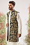 Featuring a green long open jacket in georgette base with zari, sequins and floral embroidery. Accentuate it with a kurta set, a pair of mojaris and a watch for a festive occasion or mehendi ceremony.