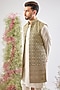 Featuring a green open jacket in georgette base with zari and sequins embroidery. Accentuate it with a kurta set, pair of loafers and a bracelet for festive celebrations or mehendi ceremony.