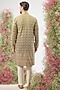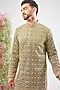 Featuring a green ombre kurta in georgette base with zari and sequins work. Accentuate it with trousers, pair of kolhapuris and a bracelet for festive celebrations or mehendi ceremony.