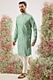 Featuring a green kurta in silk base with floral, sequin and mirror work. Accentuate it with pants, a pair of mojaris and a watch for a festive occasion or mehendi ceremony.