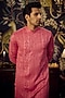 Featuring a hot pink chikankari kurta in georgette base with thread embroidery. Perfect attire for any festive occasion, exuding traditional charm and timeless elegance.
