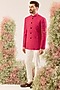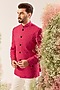 Featuring a hot pink bandhgala in silk base with cutdana work. Accentuate it with pants and pair of loafers for a wedding or sangeet ceremony.