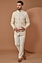 Featuring an ivory cream bandhgala in chanderi silk base with thread embroidery. Perfect wear for festive occasions or pre-wedding occasions.
