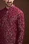 Featuring a light maroon kurta in silk base with embroidery. It is paired with contrasting white pants. Perfect wear for a wedding, sangeet or engagement ceremony.
