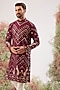 Featuring a magenta kurta in georgette base with patch work and peacock motif embroidery. Accentuate it with pants, pair of mojaris and a watch for a festive occasion or pooja ceremony.