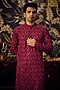 Featuring a maroon chikankari kurta in georgette base with thread and sequins work. Perfect attire for any festive occasion, exuding traditional charm and elegance.