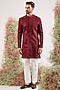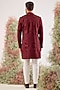 Featuring a maroon sherwani in silk base with chikankari embroidery. Accentuate it with trousers, a pair of mojaris and a mala for a wedding, engagement or sangeet ceremony.