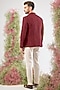 Featuring a maroon bandhgala in silk base, adorned with sleek metal buttons and dori work. Accentuate it with straight pants or churidar, and a pair of mojaris for a wedding, sangeet or engagement ceremony.