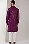 Featuring a purple kurta in silk base with sequins work. It is paired with contrasting white pants. Perfect wear for engagement or a sangeet ceremony.