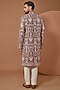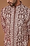 Featuring a maroon jamawar sherwani in velvet base with thread embroidery. Perfect wear for festive occasions or pre-wedding occasions.