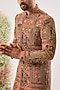 Featuring a mauve sherwani in georgette base with zari work. Accentuate it with trousers, a pair of mojaris and a mala for a wedding, engagement or sangeet ceremony.