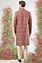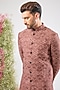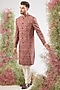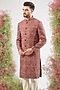 Featuring a mauve taupe sherwani in silk base adorned with thread work in geometrical pattern. Accentuate it with straight pants or churidar, and pair of mojaris for a wedding, sangeet or engagement ceremony.