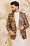 Featuring a multi-colored blazer in tussar silk base with aari embroidery. Style it with a kurta set and mojaris for a reception, sangeet, wedding or engagement ceremony.