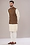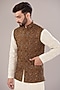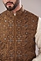 Featuring a mustard nehru jacket in silk base with thread embroidery. Perfect wear for festive occasions.