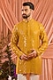 Featuring a mustard short kurta in silk base with sequins and mirror work. Style it with pants and kolhapuri sandals for a festive occasion, haldi, wedding or engagement ceremony.