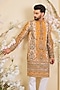 Featuring a mustard yellow kurta in crepe base with print, sequins and zari work. Style it with pants and shoes for a festive occasion, cultural event, wedding or engagement ceremony.