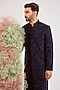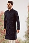 Navy Blue Velvet Chikankari Embroidered Sherwani
