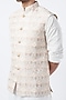 Featuring a nude bundi jacket in a silk base with embroidery. This contains only one piece.