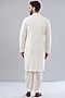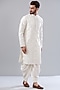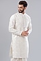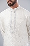 Featuring an off-white kurta in silk base with mirror and thread hand embroidery. It is paired with matching pants.