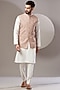 Featuring an olive green nehru jacket in georgette base with embroidery. This contains only one piece.