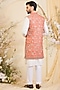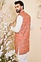 Featuring an orange long open-jacket in georgette base with zari work. Style it with a kurta set and mojaris for a wedding, sangeet or engagement ceremony.