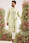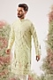 Featuring a pastel green kurta in georgette base with patch work and motif embroidery. Accentuate it with pants, pair of mojaris and a watch for a festive occasion or mehendi ceremony.