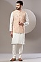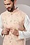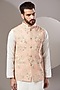 Featuring a peach nehru jacket in georgette base with floral embroidery. This contains only one piece.