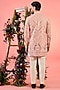 Featuring a peach indowestern in georgette base with golden leather patchwork and sequins embellishment. Style it up with pants and mojaris for a wedding, sangeet or engagement ceremony, exuding charm and elegance.