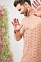 Featuring a peach kurta in georgette base with sequins and mirror work. Accentuate it with trousers, pair of kolhapuris and a bracelet for festive celebrations or sangeet ceremony.