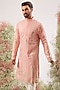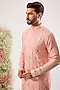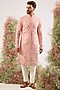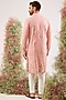 Featuring a peach kurta in georgette base with sequins and leather patch work. Accentuate it with pants, a pair of mojaris and a watch for a festive occasion or sangeet ceremony.