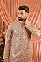 Featuring a pink short kurta in georgette base with sequins and mirror work. Style it with pants and kolhapuri sandals for a festive occasion, cultural event or sangeet ceremony.