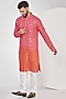Featuring a pink and orange ombre-shaded kurta in georgette base with mirror and foil work. It is paired with white pants. Perfect wear for a festive occasion or pooja ceremony.
