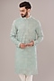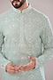 Featuring a powder blue chikankari kurta in georgette base with thread and mirror work. Perfect wear for festive occasions.
