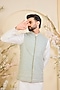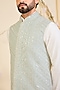 Featuring a powder blue nehru jacket in georgette base with cutdana work and hand embroidery. Style it with a kurta set and mojaris for a festive occasion, cultural event, wedding or engagement ceremony.