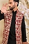 Featuring a red long open-jacket in georgette base with sequins and zari work. Style it with a kurta set and mojaris for a reception, wedding, sangeet or engagement ceremony.