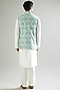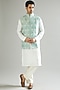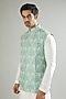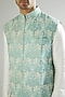 Featuring a sea green nehru jacket in silk base with floral embroidery. This contains only one piece.