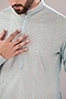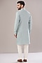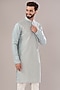 Featuring a sierra blue kurta in slub silk base with pintucks and gota work. Perfect wear for festive occasions.