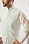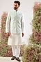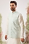 Featuring a sky blue nehru jacket in georgette base with sequins work. Accentuate it with a kurta set, a pair of mojaris and a watch for a festive occasion or sangeet ceremony.
