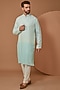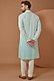 Featuring a sky blue ombre kurta in silk base with mirror embroidery. Style it with pants and mojaris for a festive occasion, wedding or sangeet ceremony.