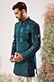 Featuring a teal sherwani in silk base with thread work. Accentuate it with trousers, a pair of mojaris and a mala for a wedding, engagement or sangeet ceremony.