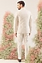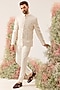 Featuring a white bandhgala in silk base with mirror work. Accentuate it with pants and a pair of loafers for a wedding or sangeet ceremony.