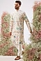 Featuring a white kurta in silk base with floral and chikankari embroidery. Accentuate it with pants, a pair of mojaris and a watch for a festive occasion or sangeet ceremony.