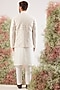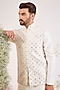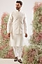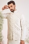 Featuring a white nehru jacket in silk base with thread and mirror work. Accentuate it with a kurta set, a pair of mojaris and a watch for a festive occasion or sangeet ceremony.